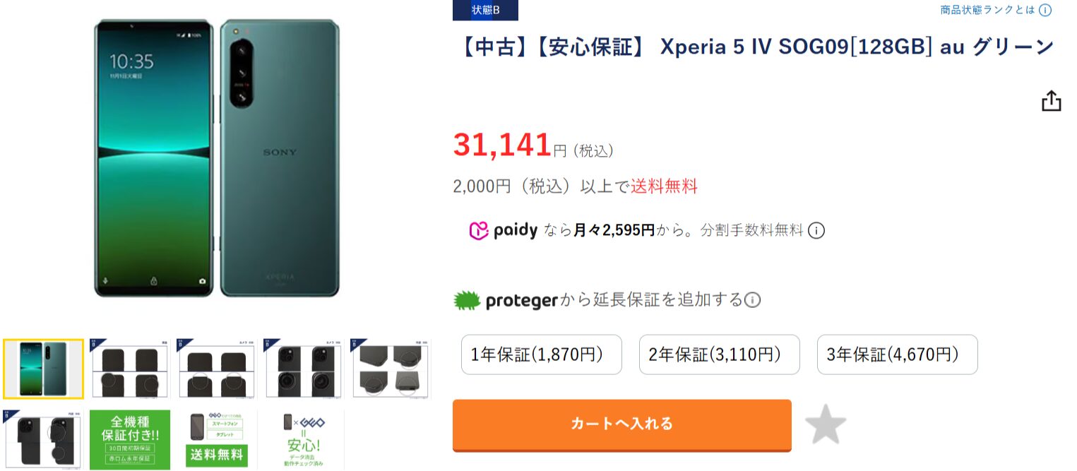 サブスマホとして使うことを想定して、あえてBランクの個体を選んでみました。