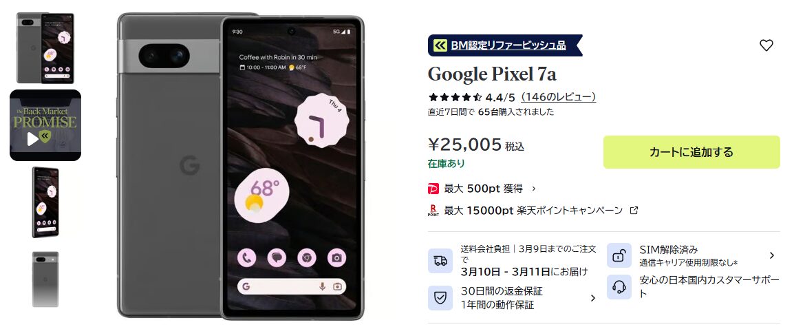 状態◎なPixel 7aが2万円台で購入可能