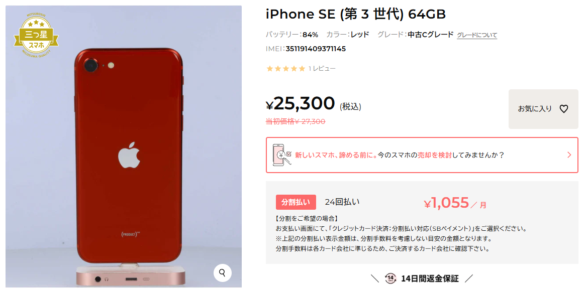 | 製品名 | iPhone SE 第3世代 |